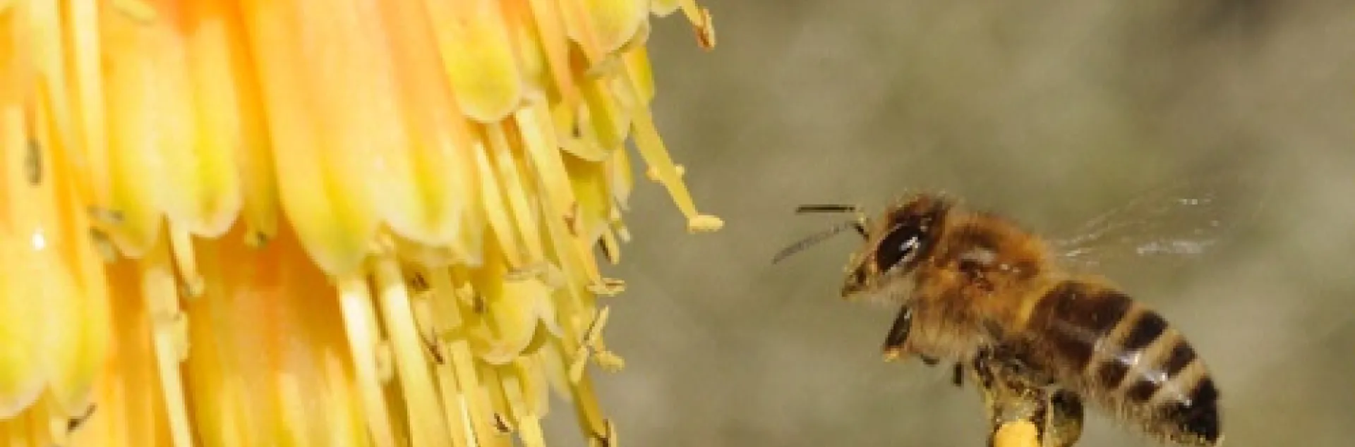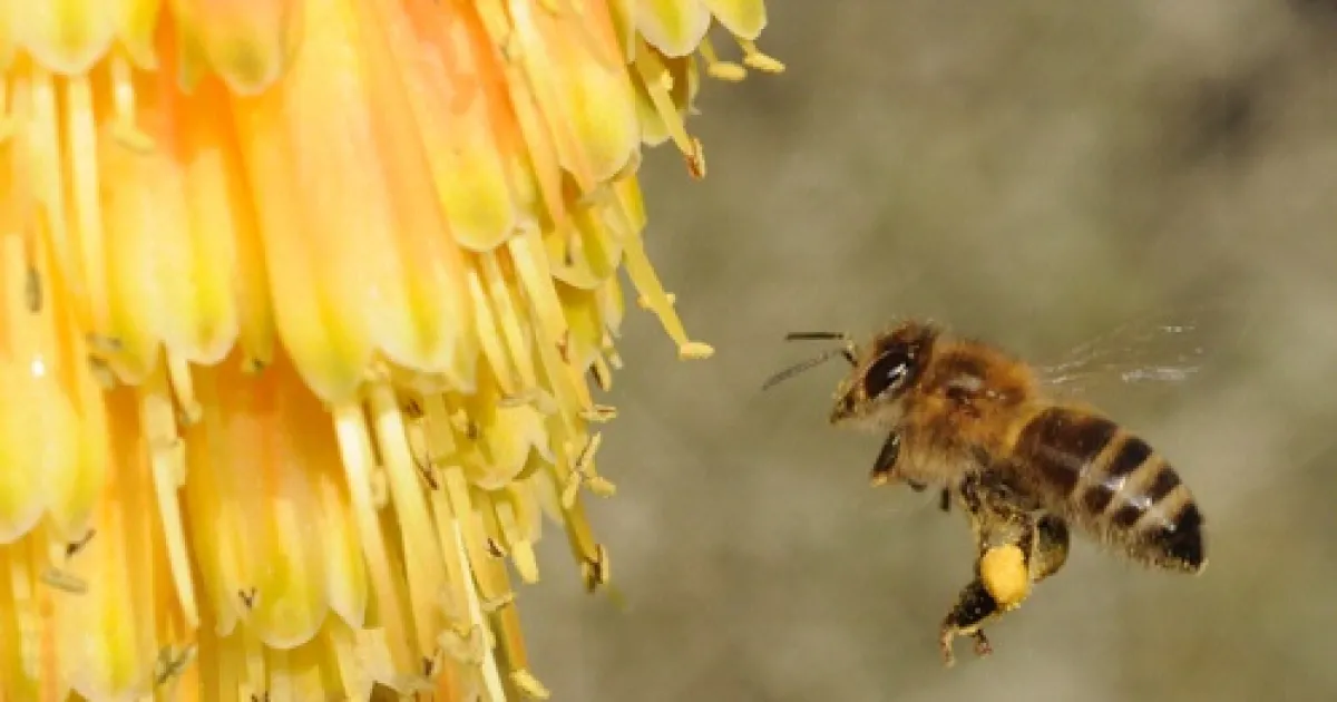 It was Saturday, Dec. 20, 2008, five days before Christmas, and a lone honey bee, packed with pollen, was heading for the red-hot poker, variety "Christmas Cheer" (Kniphofia).