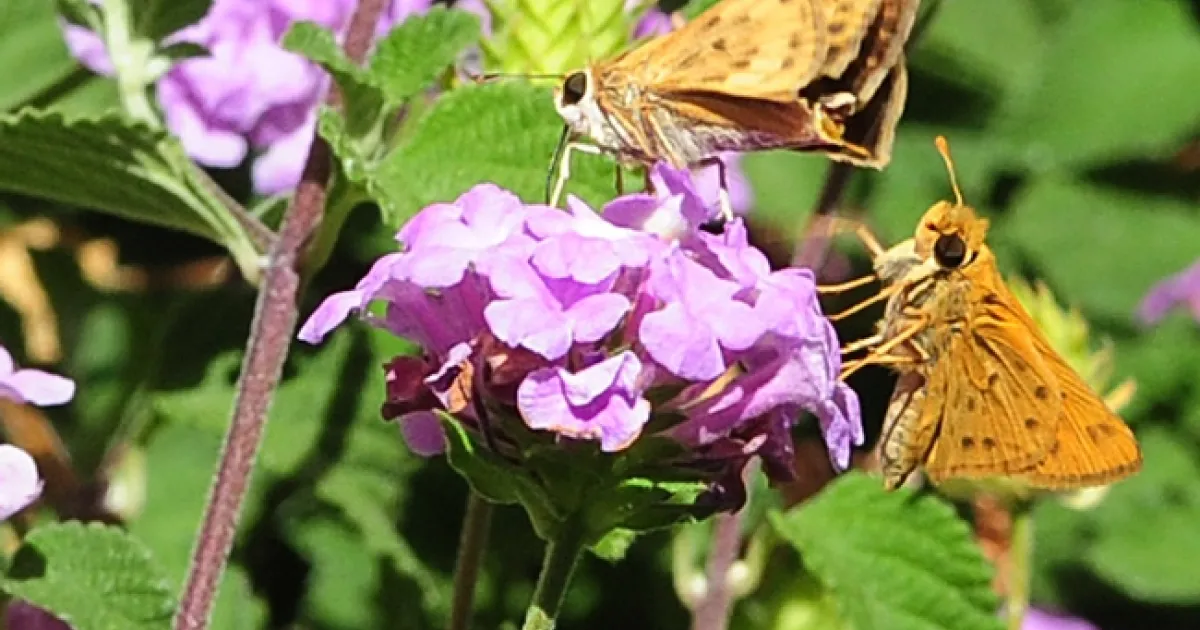 The fiery skipper is attracted to lantana, verbena, zinnias, marigolds, and "in the wild seems quite happy with yellow starthistle," Shapiro says.