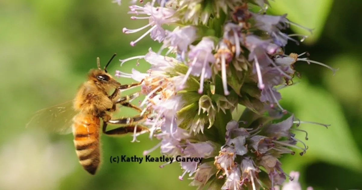Italian honey bee sipping nectar. (Photo by Kathy Keatley Garvey)