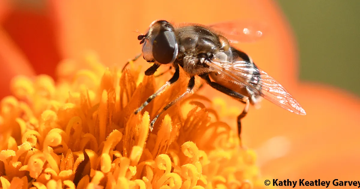 But still, our drone fly, E. tenax (does E. stand for Excellent?) is a pollinator that visits flower after flower. From a maggot in a drainage ditch to an "honorary" bee pollinating flowers to a star on "Friday Fly Day."