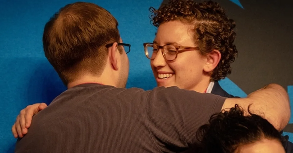 Linnaean Games Team (Bug Bowl) member Emily Bick received a congratulatory hug after the UC team won the national championship in 2018. (ESA Photo)