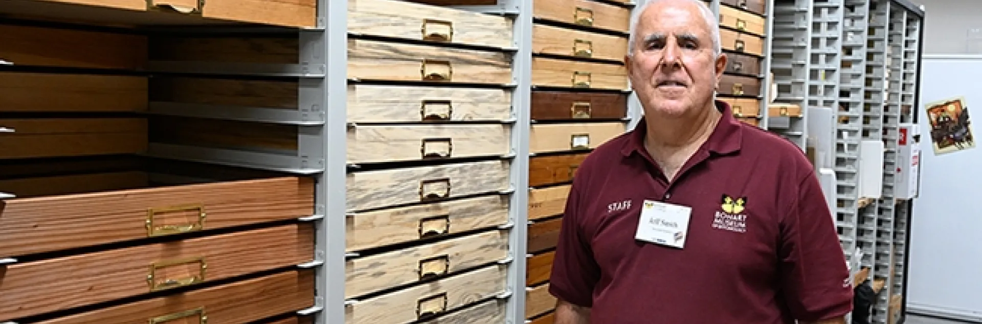 And then you notice how they are stored--in intricate wooden drawers made by entomologist and master builder Jeff Smith, volunteer curator of the Lepidoptera collection.