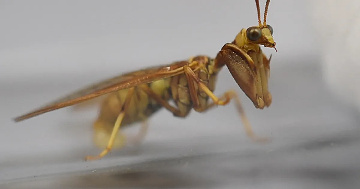 "As with most mantidflies, this species is parasitic to spiders as larva: the eggs of wolf spiders are their preferred host and larva will get themselves wrapped up with the eggs in the sac by the spider, since they cannot break into the sacs themselves," according to Wikipedia. "If the spider hasn't yet laid eggs, the larva will subsist on the spider's blood until then. Once inside the sac the larva will feast on the eggs until it pupates."