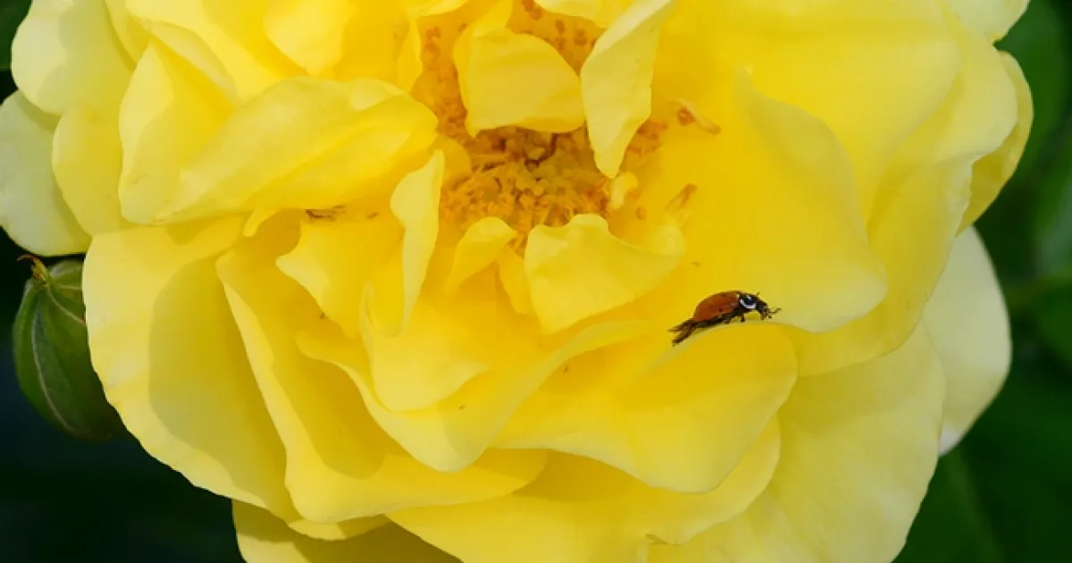 We placed our two little beneficial buddies on a yellow rose rose bush, "Sparkle and Shine," purchased last year during the Rose Weekend sponsored by the UC Davis-based California Center for Urban Horticulture (CCUH), part of the College of Agricultural and Environmental Sciences.