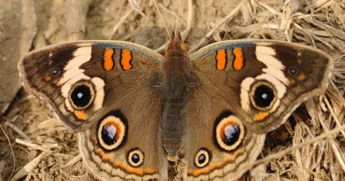 And that's what makes the buckeye butterfly (Junonia coenia) so easily recognizable--the bold pattern of eyespots on the wings, bold enough to startle and scare away prey.