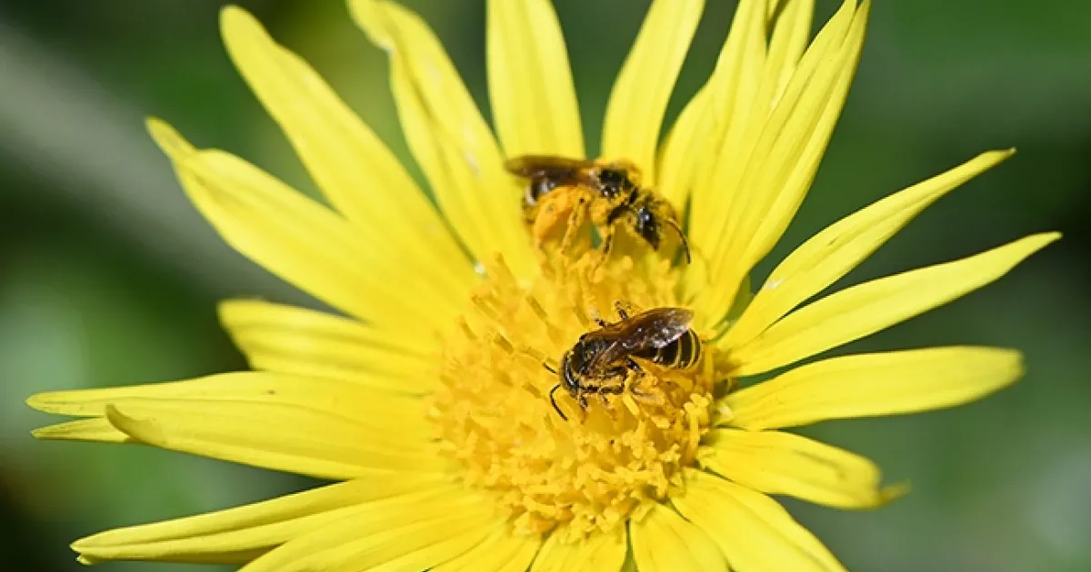 Honey bees and native bees love capeweed, Arctotheca calendula, also called South African capeweed, cape dandelion and cape marigold or cape gold.
