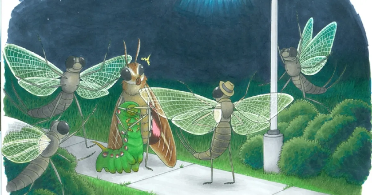 "The swarmers are attracted to lights and tend to expose themselves in the evenings." Sentence by one of Lynn Kimsey's students; illustration by UC Davis graphic artist/entomology student Karissa Merritt.