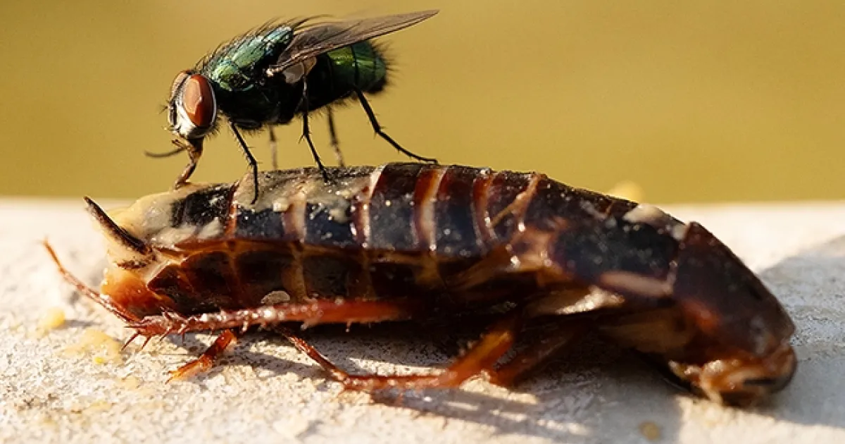 Or two flies. On a cockroach.