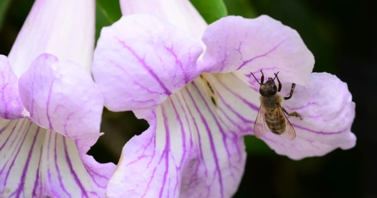 As for the violet trumpet vine, it's one of the stars in the Häagen-Dazs Honey Bee Haven, a half-acre bee friendly garden next to the Harry H. Laidlaw Jr. Honey Bee Research Facility on Bee Biology Road, UC Davis. The garden is open to the public for self-guided tours from dawn to dusk. Neither the UC Davis Arboretum nor the haven charges admission for self-guided tours.