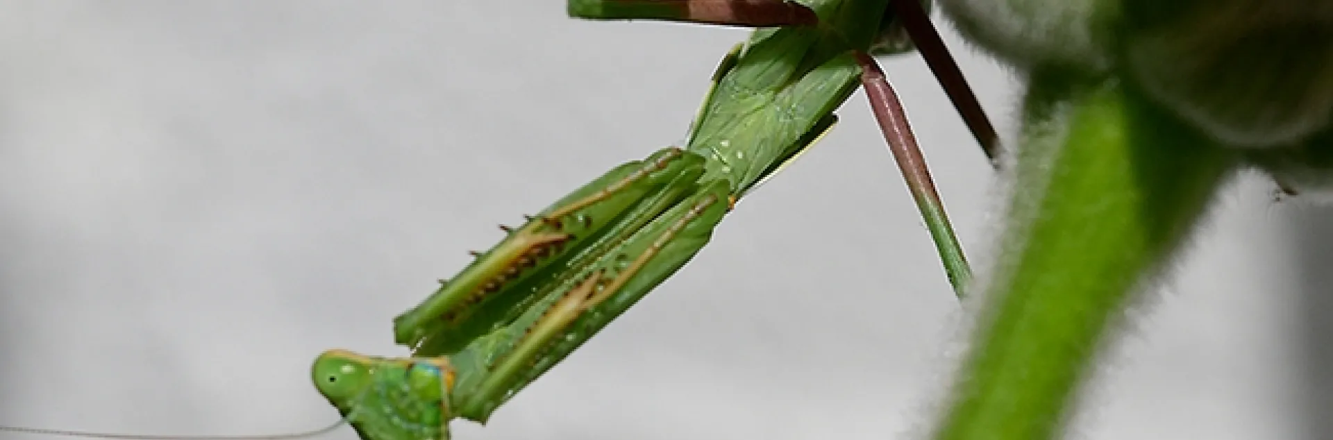 Ms. Mantis: "No, just stretching. See, I've closed my spiked forelegs."