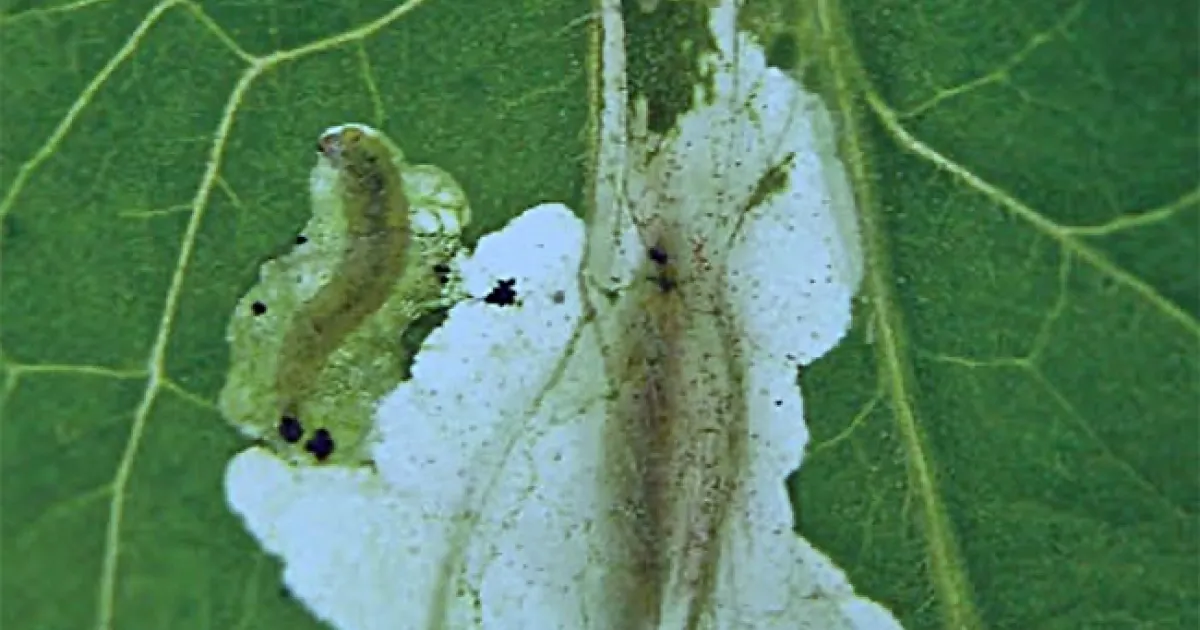 That would include the larvae of Tuta absoluta, a South American tomato leafminer. In its adult stage, it's a moth in the family Gelechilidae. In its larval stage, it's a major agricultural pest.