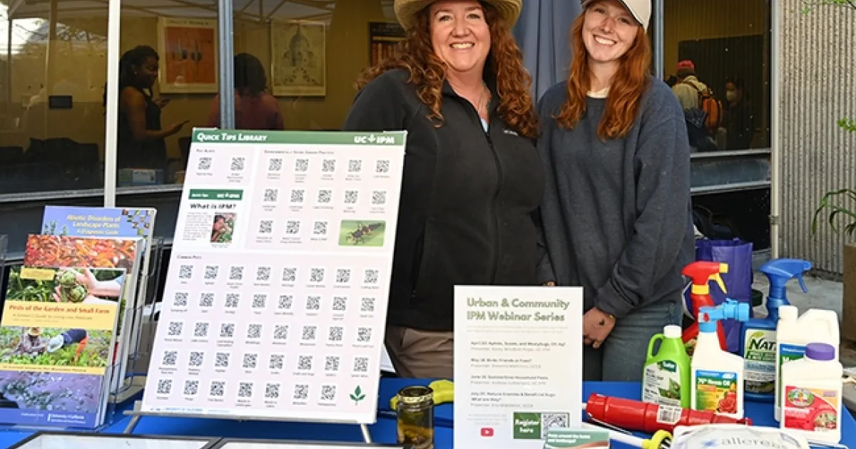 Ready to field questions are these representatives of the UC Statewide Integrated Pest Management Program: Karey Windbiel-Rojas (left), associate director for Urban and Community IPM/Area IPM Advisor, and IPM educator Lauren Fordyce. (Photo by Kathy Keatley Garvey)