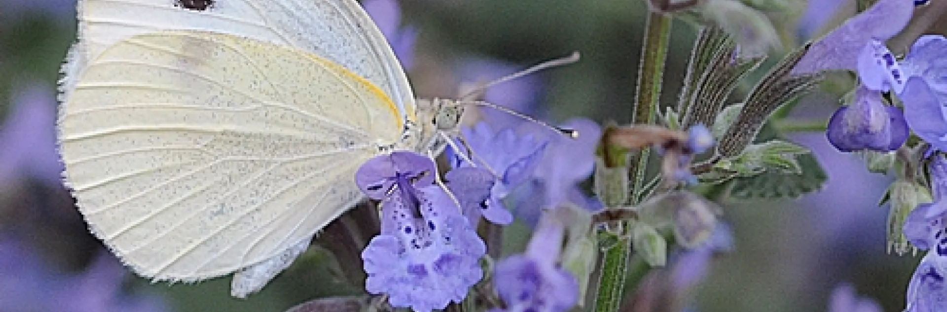 The cabbage white butterfly (Pieris rapae) looks like a Lady in White when she perches on catmint.