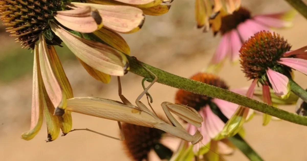 This week we watched a praying mantis slide beneath a purple coneflower (Echinacea pupurea) at the Häagen-Dazs Honey Bee Haven at the Harry H. Laidlaw Jr. Honey Bee Research Facility of University of California, Davis.