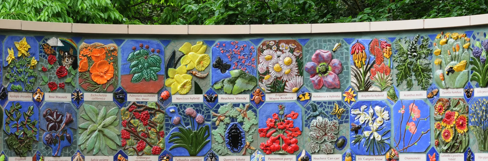 Currently, undergraduates in the course Art, Science, and the World of Insects are building four ceramic mosaic murals (15-feet wide, five-feet high) behind the UC Davis Arboretum Nursery, adjacent to the Climate Adaptation Living Laboratory (CALL) garden. The murals focus on various California ecosystems and response to climate change. (See more)