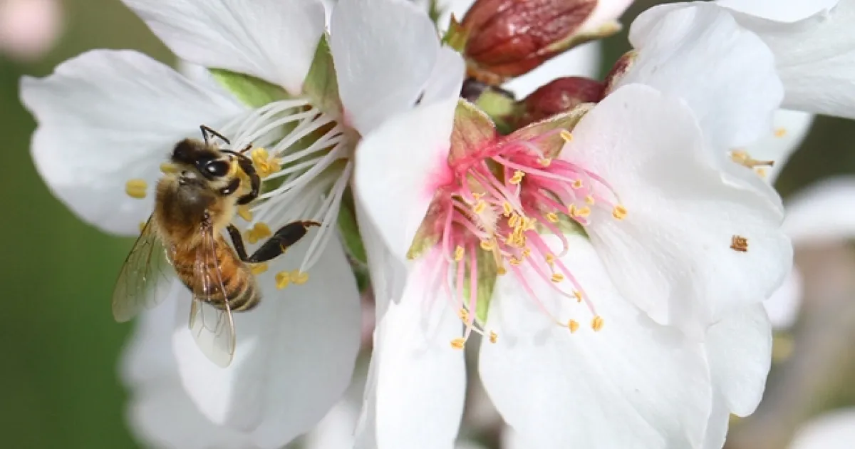 Almonds usually start blooming around Valentine's Day, heralding the beginning of almond pollination season. Hear that buzz? No? It's coming.