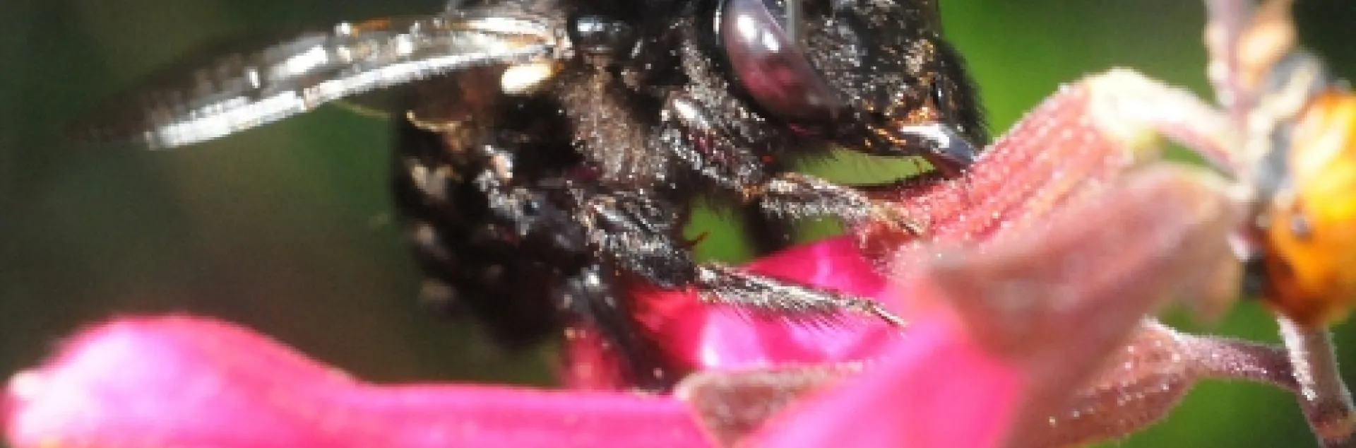 You’ll see it nectaring flowers, too. Below, this female carpenter bee (Xylocopa) is robbing nectar from sage. Maybe she's Josie the Carpenter?