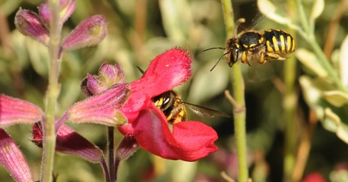 “Males are territorial and very aggressive, attacking any insect that enters its territory that isn't a wool-carder female,” Kimsey said. “The males establish territories around flowering plants, so they will attack honey bees and any other bees coming to visit the flowers."