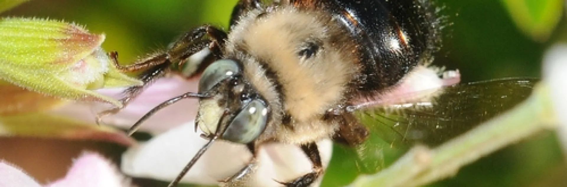 Another carpenter bee increasingly found in the Davis area is the valley carpenter bee. The sighting of the male, a green-eyed fuzzy yellow "teddy bear," prompts lots of calls to the UC Davis Department of Entomology. "What is it?" they ask.