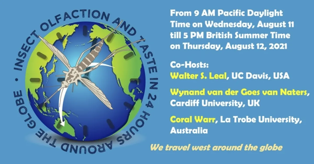 You'll hear about a variety of insects when the international symposium, “Insect Olfaction and Taste in 24 Hours Around the Globe,” takes place beginning at 9 a.m., Pacific Daylight Time (PDT), Wednesday, Aug. 11.