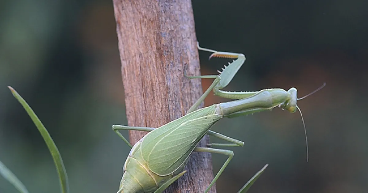 We've spotted as many as seven adult praying mantids at a time in our little pollinator garden in Vacaville, Calif., but never once have we seen any of them laying eggs.