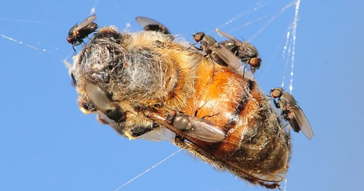 It was a bad day for a honey bee but a good day for the spider and the flies.
