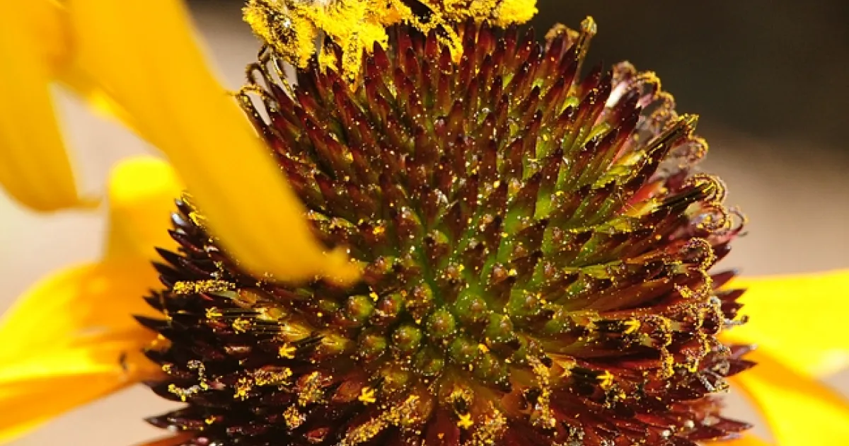 If you look closely, sometimes you'll see a bee covered with pollen. The bee below was on a yellow coneflower (Echinacea paradoxa) in Napa.