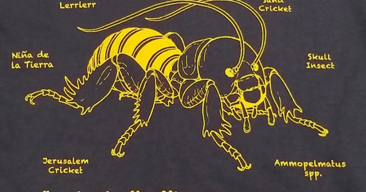 With so many folks asking "What are those weird bugs?" and UC Davis distinguished professor Lynn Kimsey, director of the Bohart Museum of Entomology, describing them as "basically Vienna sausages with bitey jaws," it definitely had to happen--a Bohart t-shirt depicting a Jerusalem cricket, aka potato bug, with that analogy.