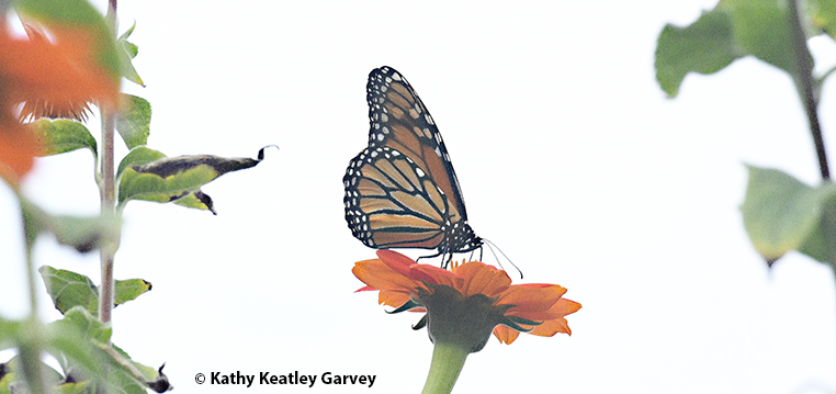 We remember when a male monarch, tagged and released in Ashland, Ore., by citizen scientist Steven Johnson of the James program, fluttered into our Vacaville pollinator garden on Labor Day, 2016. Records show that Johnson tagged and released it Aug. 28 and it found its way into our garden on Sept. 5. I managed to photograph it with its tag: “Monarch@wsu.edu A6093.” My alma mater!