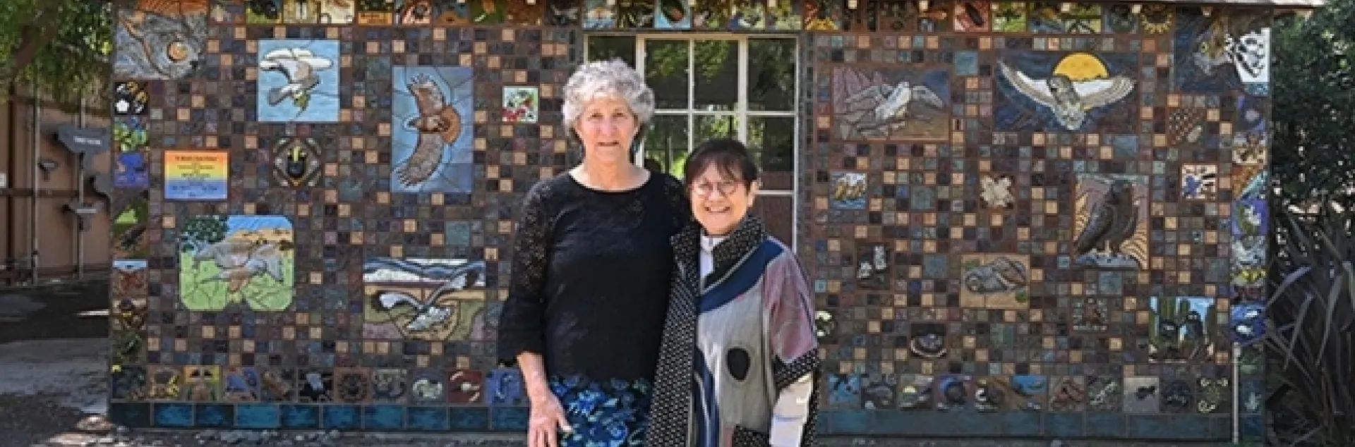 The mural, measuring 22-feet wide and 8-feet in height, is comprised of more than 1300 handmade ceramic relief artworks, tiles and trim pieces. “The mural celebrates 11 key raptor species found in California and 84 insect species that are either parasites of these raptors or eaten by them,” said Ullman, an entomologist-artist who co-founded the UC Davis Art-Science Fusion Program with artist Donna Billick of Davis.