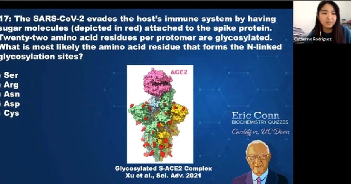 The event, the Eric Conn Memorial Biochemistry Games, not only memorialized a UC Davis plant biochemist, but offered “ZOOM fatigue relief” for UC Davis undergraduate students and Cardiff University students studying biochemistry, said organizer and moderator Walter Leal, UC Davis distinguished professor of molecular and cellular biology.