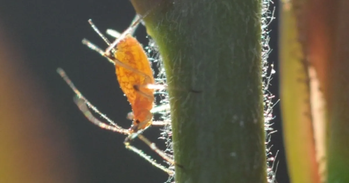 A soldier beetle crawled to the edge of a leaf. A ladybug cartwheeled over a leaf and then clung to the tip.