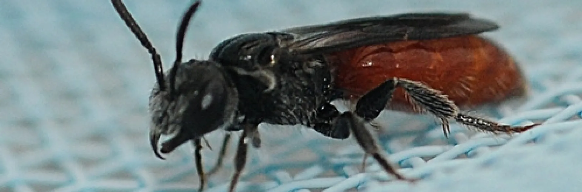 In this case (see photo below), it's a female cuckoo sweat bee from the genus Sphecodes, according to native pollinator specialist Robbin Thorp, emeritus professor of entomology at UC Davis.
