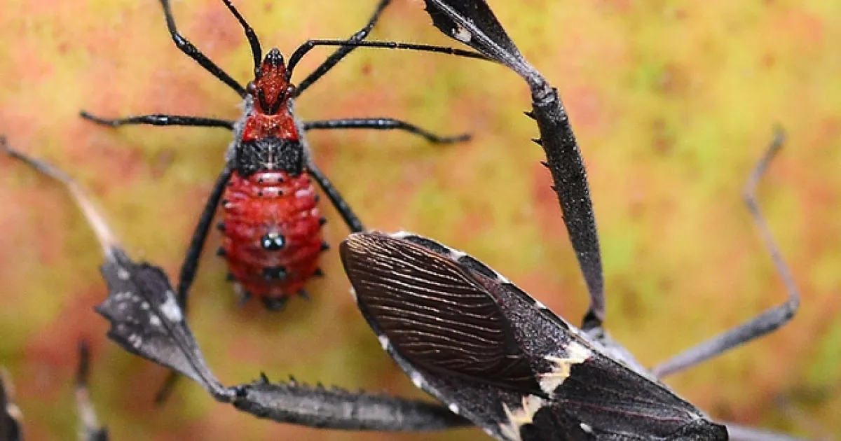 What's there? The nymph of a leaffooted bug (Leptoglossus zonatus).