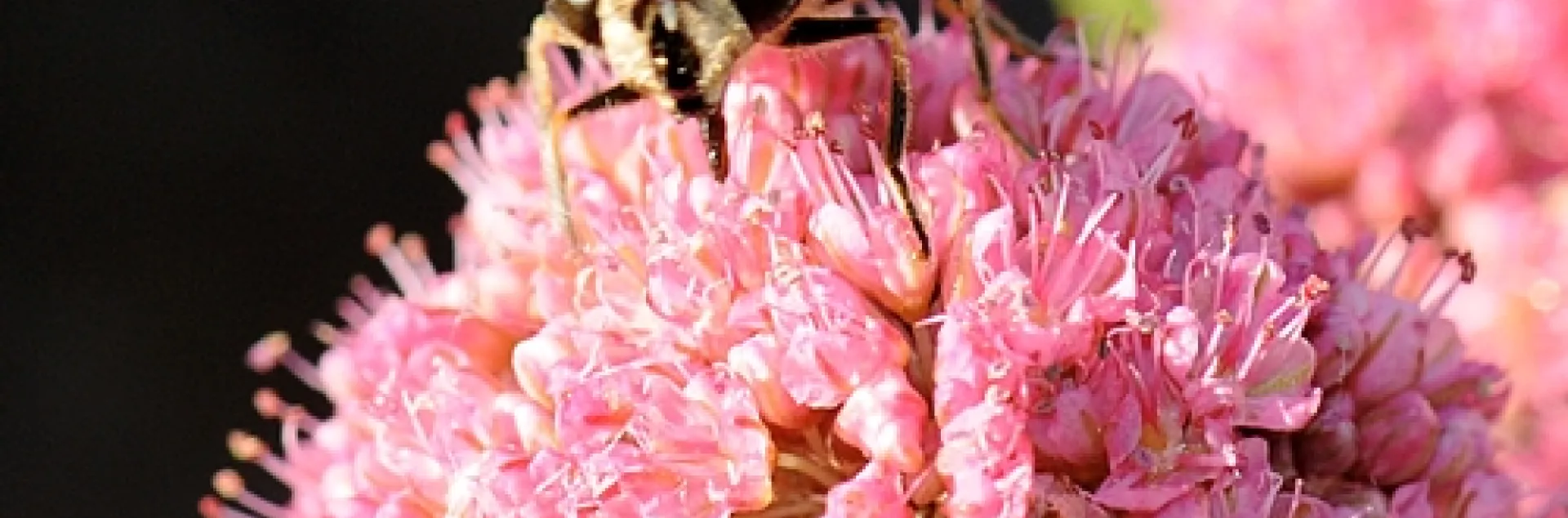 Hover flies (family Syrphidae) hover over flowers like a sightseeing helicopter. Then they dip down and sip the nectar.