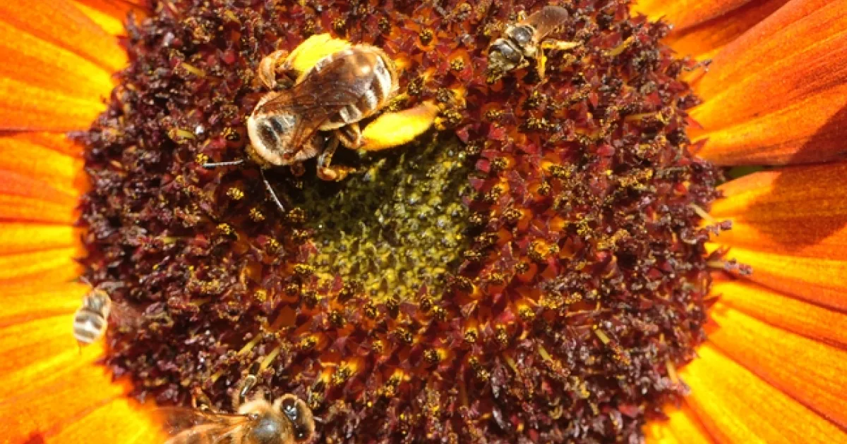 You may find five species of bees sharing a sunflower!