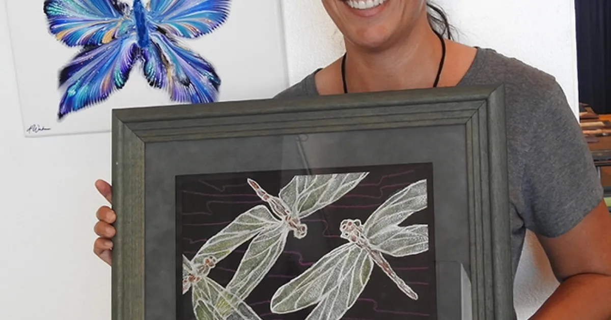 Art by Iris Mayhew of American Canyon also caught our eye. She drew inspiration from a safari in Kenya. "I love animals," she said. That includes monarchs and Gulf Fritillaries. She'll be depicting them next.