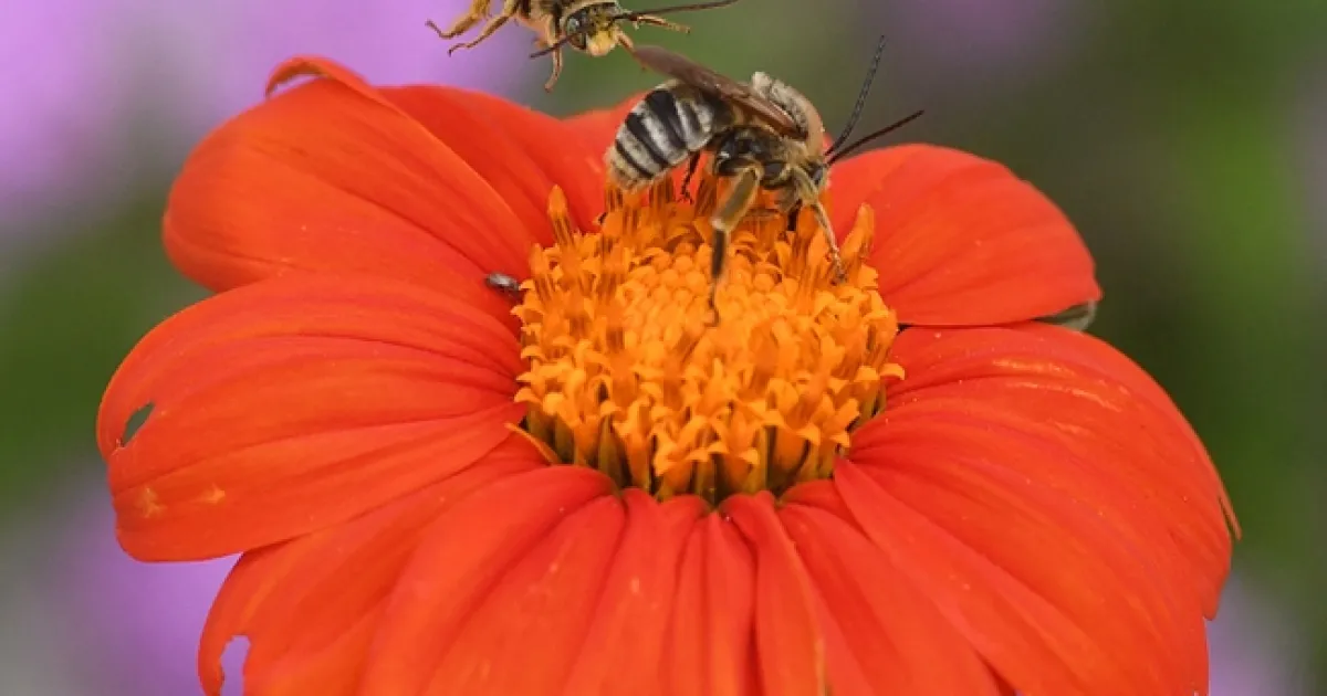 So here's this male longhorned bee (Svastra) sipping a little nectar from a Mexican sunflower (Tithonia).