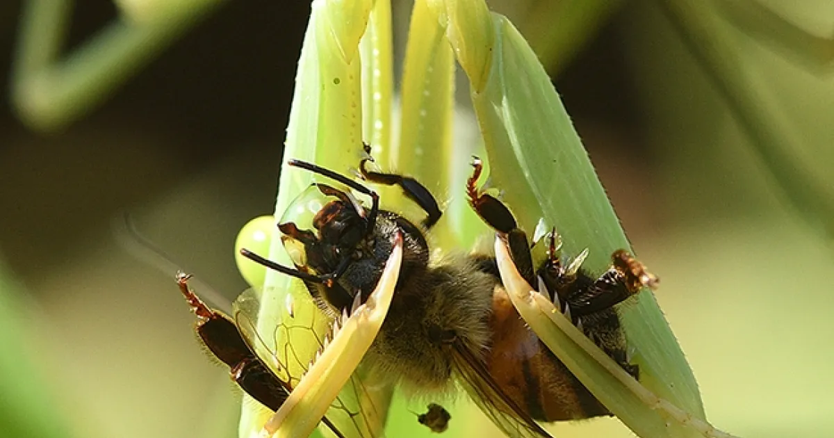 Praying mantises are not considered biological pest control agents because basically they'll eat anything they can catch: from your favorite pollinators (bees and butterflies) to your favorite beneficial insects (lady beetles and assassin bugs), your favorite bird (hummingbird) to pests (stink bugs and lygus bugs) to syrphid flies, green bottle flies, and wandering caterpillars that happen to cross its path.