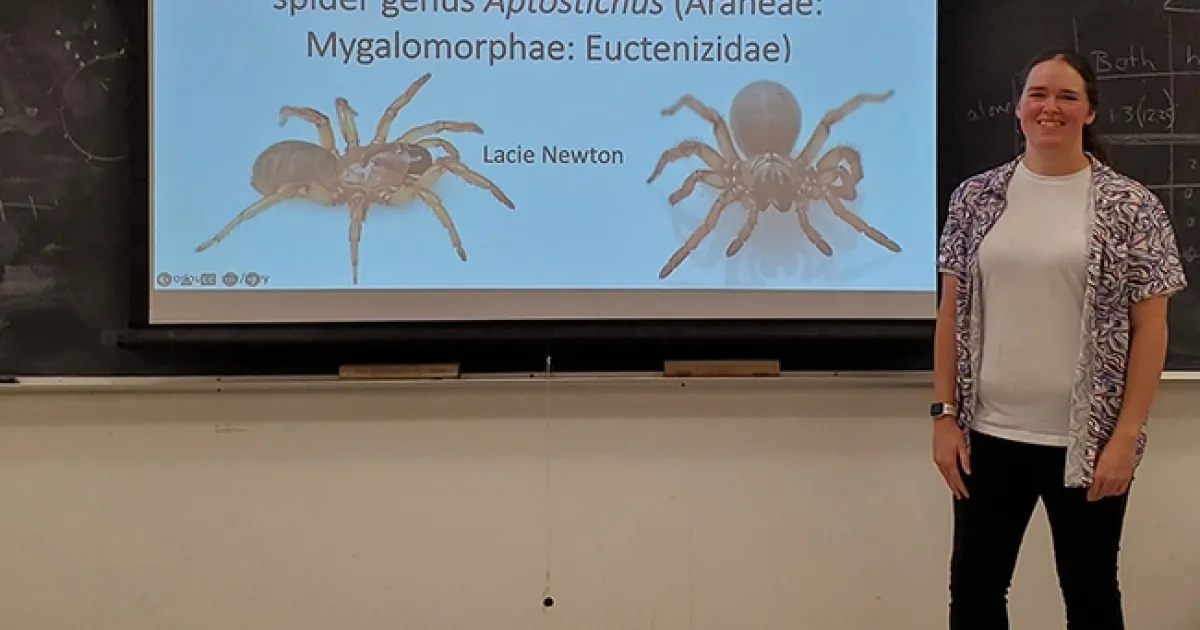 What sparked her interest in spiders? “I actually used to be terrified of spiders,” Lacie acknowledged. “It wasn't until fall semester of my sophomore year when I took a zoology course that I began to appreciate not only the vast amount of diversity within spiders but also how amazing they are as a group, such as the tensile strength of spider silk being comparable to steel, spider venoms playing a role in potential medical applications, and a myriad of feeding strategies, etc..”