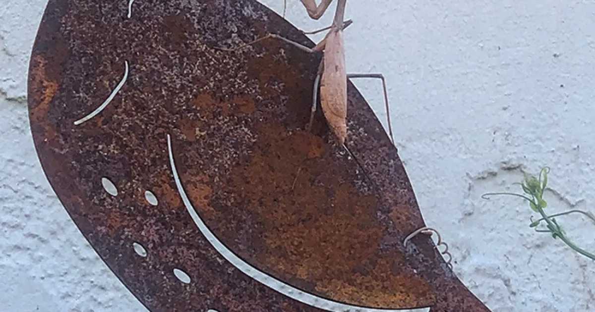 In art world, yes. This praying mantis climbed to the top of a decorative garden sculpture, looked around, groomed herself, and jumped on another decorative garden sculpture.