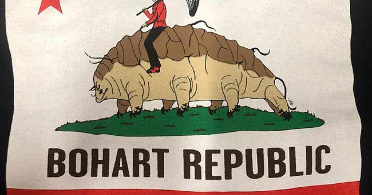The California Bear Flag features a grizzly bear, while the Bohart Republic flag features another bear, a water bear. The California State Legislature adopted the official version of the Bear Flag in 1911 in a law signed by then Gov. Hiram Johnson in 1911.