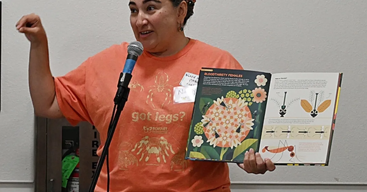 At a recent Bohart Museum of Entomology open house, she read passages from her newly published children's book, Please Don't Bite Me: Insects that Buzz, Bite and Sting, and then encouraged questions.