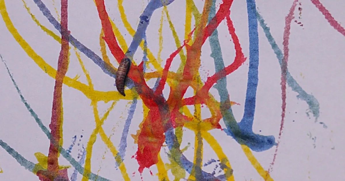 It started with graduate student Rebecca O'Flaherty, who coined the name, "Maggot Art," and established it as an educational curriculum. She's taught youths and adults alike to dip a maggot in non-toxic, water-based paint and let it crawl (or guide its movements) on white paper. Voila! Maggot Art!