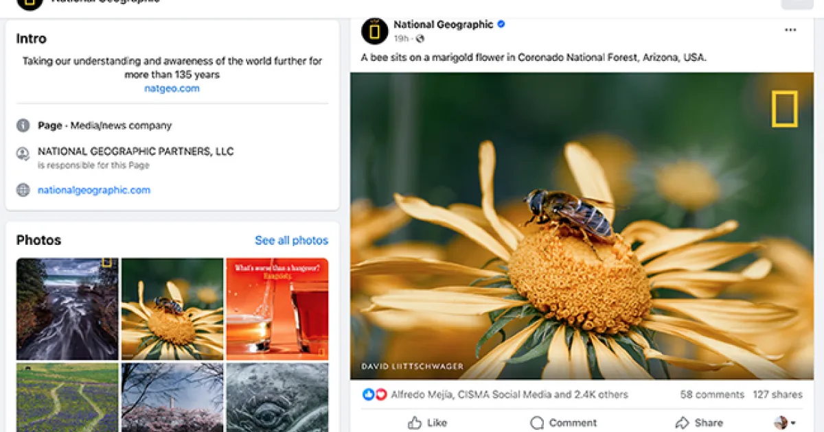 As of 3 p.m. today, this mistaken-identity image has drawn 2,400 views, 66 comments and 136 shares from National Geographic's 50 million FB followers.