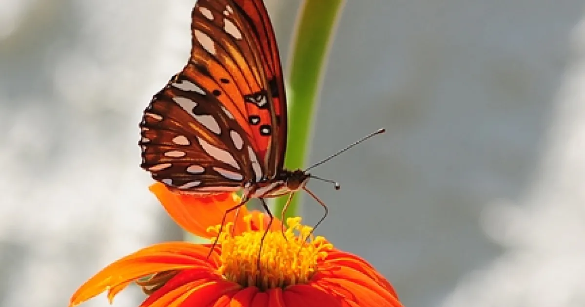 For months, I've been waiting ah, so patiently (well, not always s-o-o-o patiently) for the gulf fritillary butterfly to touch down on our Mexican sunflower, Tithonia.