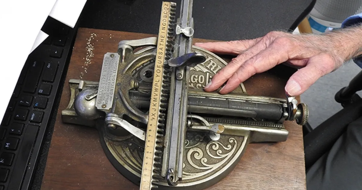 “This model is one of our nation's oldest linear index typewriters,” Hammock says. "It has no keyboard. It has a rail-type system with the characters spread out in a straight line--and not in alphabetical order, either. This is confusing compared to the modern-day QWERTY keyboard design, yet this instrument saved my grandfather's career.”