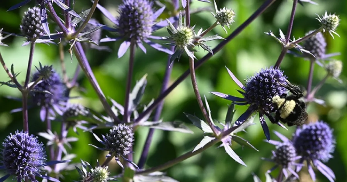 There she was, foraging in a bed of steely blue-purple flowers, Eryngium amethystinum, a genus that belongs to the carrot family, Apiaceae.