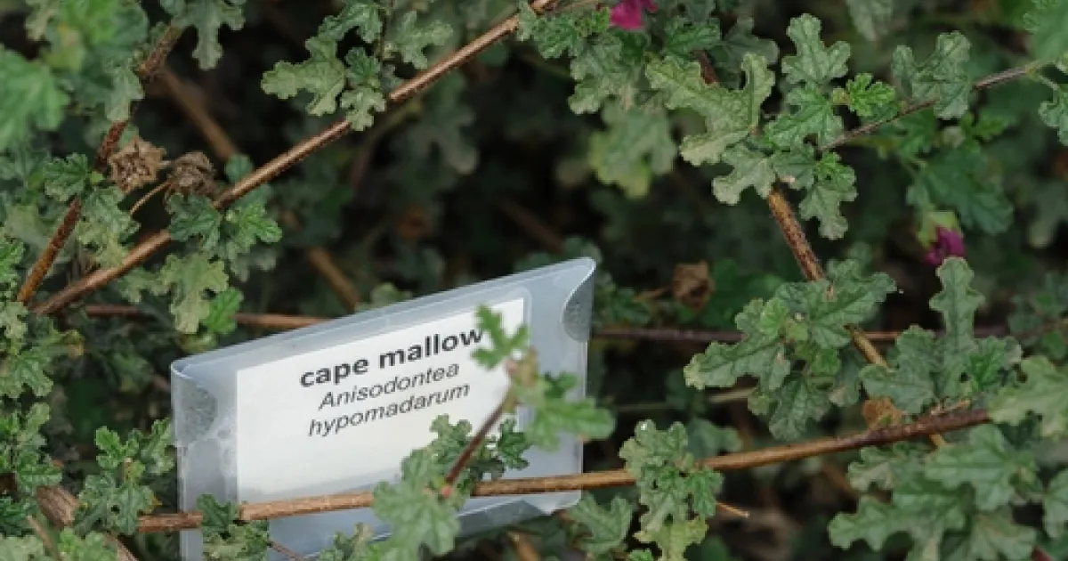 One of the spectacular plants blooming in the Häagen-Dazs Honey Bee Haven, the half-acre bee friendly garden at the University of California, Davis, is the cape mallow (Anisodontea hypomandarum), a native of South Africa.