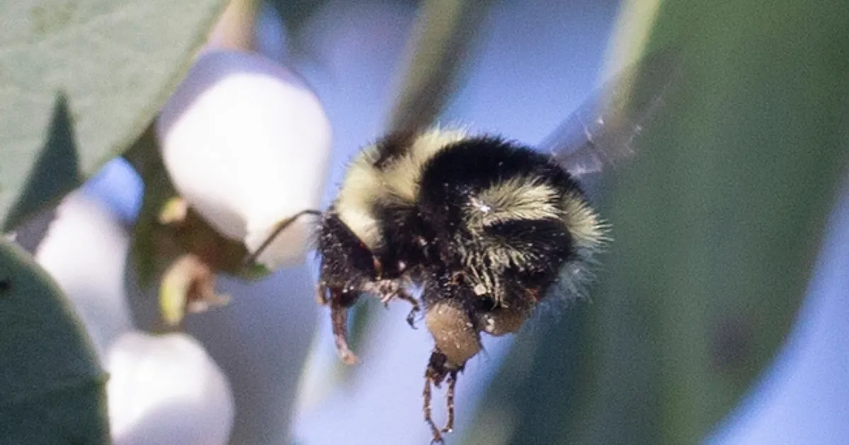 Photographer Allan Jones captured this image of a black-tailed bumble bee, Bombus melanopygus, on Jan. 6 in UC Davis Arboretum and Public Garden to win the Robbin Thorp Memorial Bumble Bee Contest.